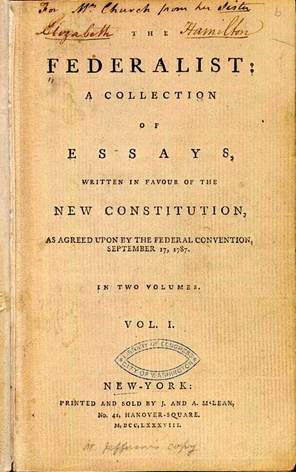 Two examples stand out. James Madison, in Federalist no. 10, proposed a solution for the problem of political division which arose as a natural concomitant to republican liberty. Madison proposed political division, or faction, could be contained and controlled more easily in an expansive republic. The larger the republic, the less likely a dominant interest group would evolve and gain control of the central government. Similarly, Thomas Jefferson’s musings about the virtue of small, freehold yeoman farmers in his Notes on the State of Virginia had their basis in seventeenth-century Whig theories about how to best maintain liberty over and against a powerful state.